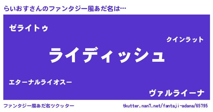 | 意味不明あだ名 | 『永久保存らいおす』『自称らいおす』 |