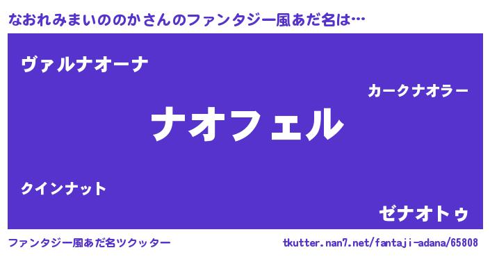| 胡散臭い通販商品みたいなあだ名 | 『億万長者になれるブレスレット…その名も「なおれみまいののか」』 |