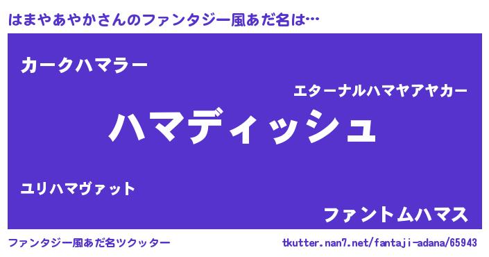 | ヘコむあだ名 | 『はまやあやか(遠い目)』『はまっちょ』 |