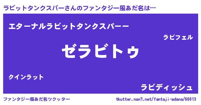 | ヒーロー風カッコイイあだ名 | 『最強戦士ラビットタンクスパー』 |