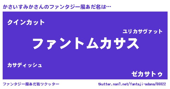 | ヒーロー風カッコイイあだ名 | 『天弓騎士カサ』『究極戦士カサイスミカ』 |