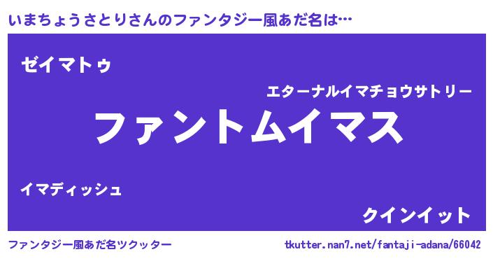 | ポケモン風あだ名 | 『ヒイマチョウサトリ』『イマセウス』 |