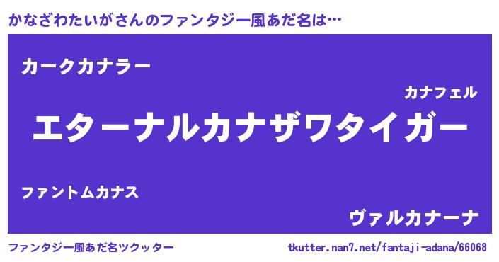 | 女子向けラノベタイトル風あだ名 | 『かなざわたいがの婚約者』 |