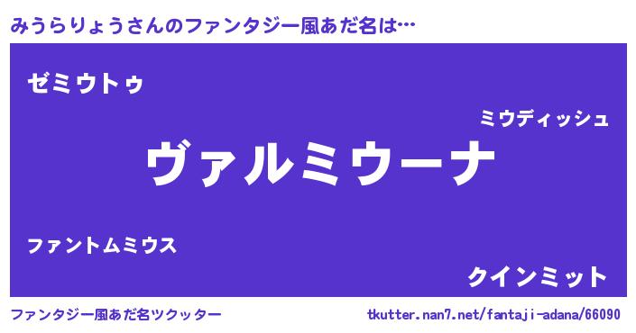 | 男性向けラノベタイトル風あだ名 | 『魔弾の王とみうらりょう』 |