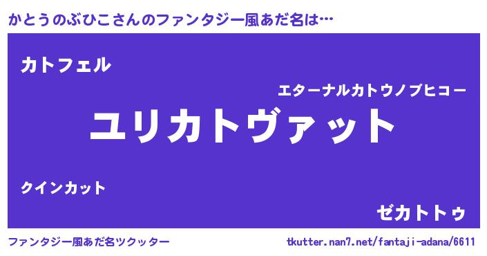 | 男性向けラノベタイトル風あだ名 | 『かとうのぶひこに滅ぼされるだけの簡単なお仕事です』 |