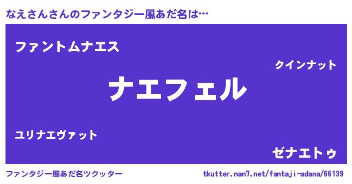 | ヘコむあだ名 | 『なえっふぃ~』『なえお』 |