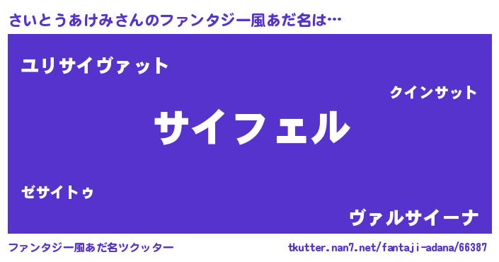 | 胡散臭い通販商品みたいなあだ名 | 『必ず成功する水晶球…その名も「さいとうあけみ」』 |