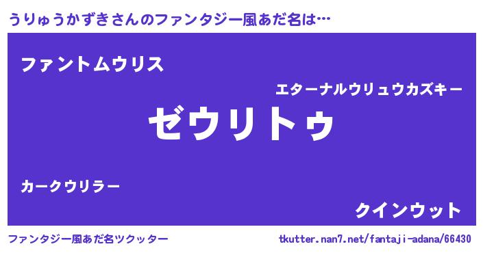 | 意味不明あだ名 | 『自称うりゅうかずき』 |