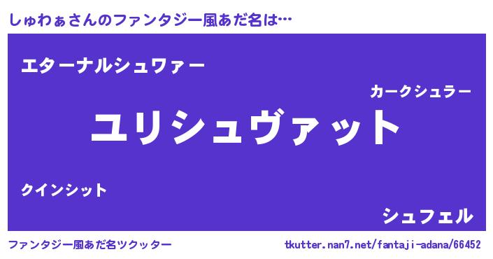 | 男性向けラノベタイトル風あだ名 | 『しゅわぁに滅ぼされるだけの簡単なお仕事です』 |