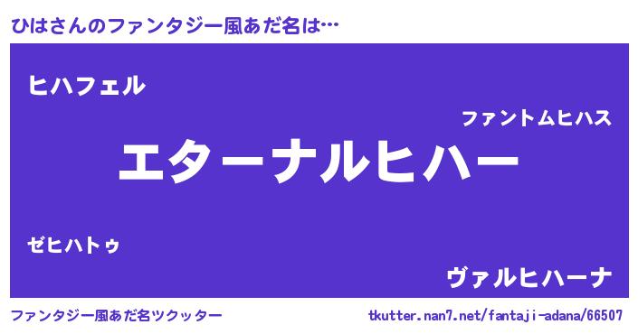 | 女子向けラノベタイトル風あだ名 | 『ひはの雑貨屋さん』『ひは様がみてる』 |