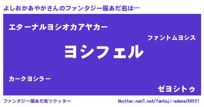 | 男性向けラノベタイトル風あだ名 | 『ヨシオカアヤカアートオンライン』 |