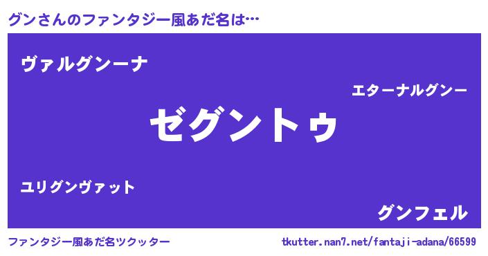 | 男性向けラノベタイトル風あだ名 | 『Re:グンから始める異世界生活』 |