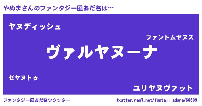 | 男性向けラノベタイトル風あだ名 | 『この素晴らしい世界にやぬまを!』 |