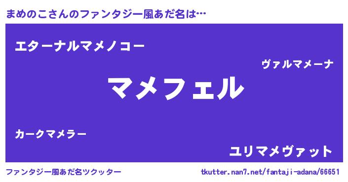 | 男性向けラノベタイトル風あだ名 | 『まめのこに滅ぼされるだけの簡単なお仕事です』 |