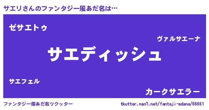 | 意味不明あだ名 | 『永久保存サエリ』『自称サエリ』 |