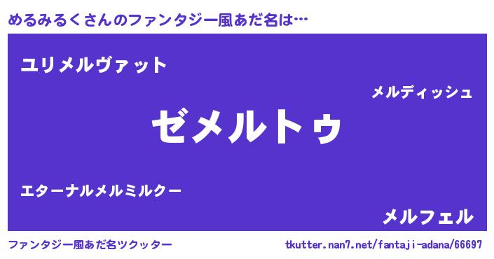 | 意味不明あだ名 | 『自称めるみるく』『ペロリンめるみるく』 |