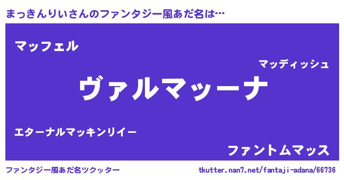 | 男性向けラノベタイトル風あだ名 | 『この素晴らしい世界にまっきんりいを!』 |