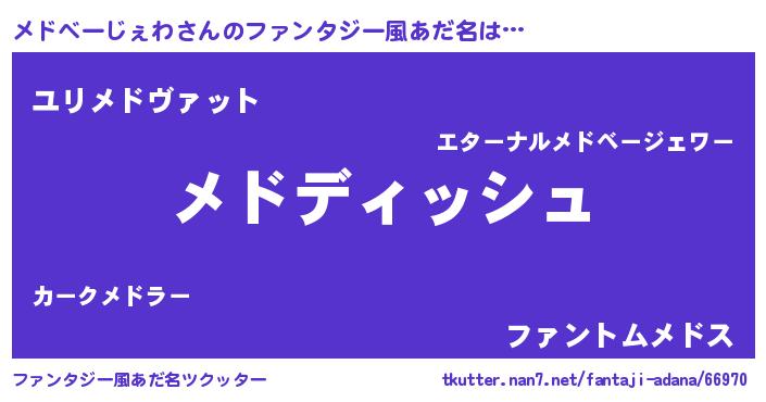 | 意味不明あだ名 | 『永久保存メドベーじぇわ』 |
