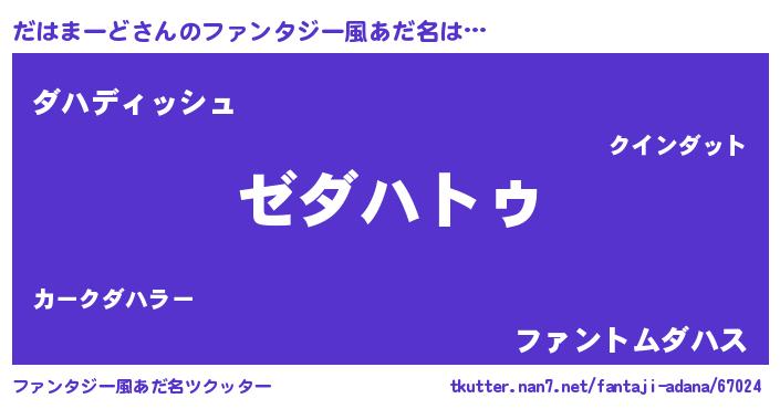 | 男性向けラノベタイトル風あだ名 | 『Re:だはまーどから始める異世界生活』 |