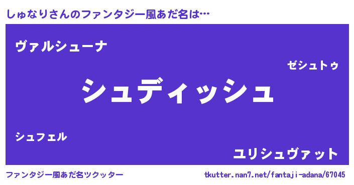 | 男性向けラノベタイトル風あだ名 | 『しゅなりという概念が存在しない退屈な世界 』 |