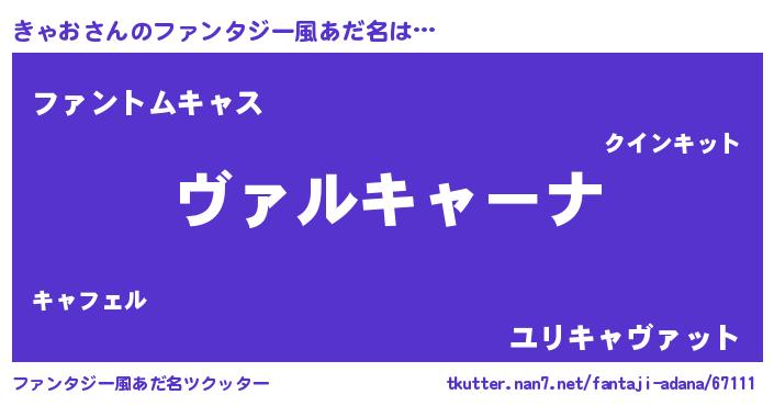 | 男性向けラノベタイトル風あだ名 | 『この素晴らしい世界にきゃおを!』 |