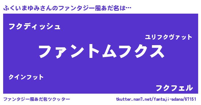 | 男性向けラノベタイトル風あだ名 | 『ダンジョンにふくいまゆみを求めるのは間違っているだろうか』 |