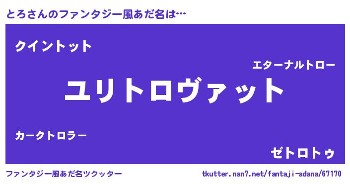 | 女子向けラノベタイトル風あだ名 | 『とろの玉の輿計画!』『死神とろの再婚』 |