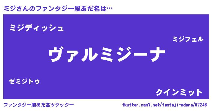 | ヘコむあだ名 | 『ミジ(笑)』『ミジっふぃ~』 |