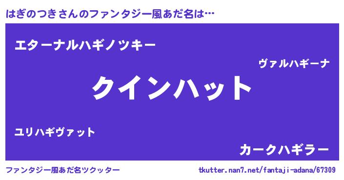 | 男性向けラノベタイトル風あだ名 | 『おまえをオタクにしてやるから、俺をはぎのつきにしてくれ! 』 |
