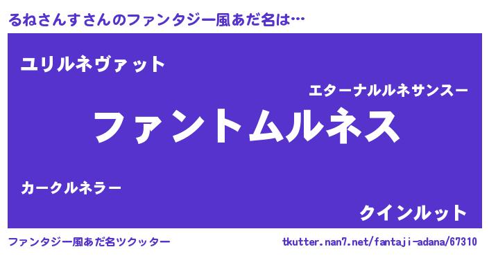 | 女子向けラノベタイトル風あだ名 | 『るねさんすの卵を拾いまして』 |