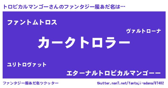 | 男性向けラノベタイトル風あだ名 | 『トロピカルマンゴーに滅ぼされるだけの簡単なお仕事です』 |