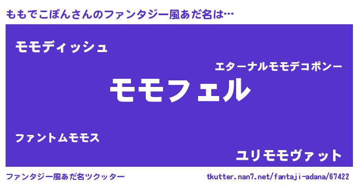 | 男性向けラノベタイトル風あだ名 | 『モモデコポンアートオンライン』 |
