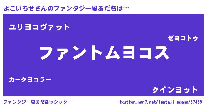 | 女子向けラノベタイトル風あだ名 | 『よこいちせの卵を拾いまして』 |