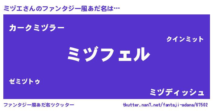 | ヘコむあだ名 | 『ミヅっふぃ~』『ミヅエ(爆)』 |