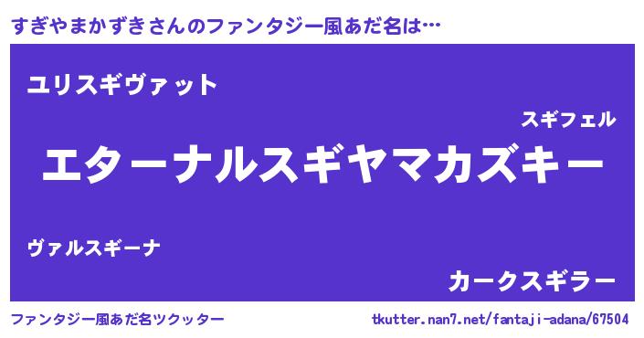 | 女子向けラノベタイトル風あだ名 | 『すぎやまかずきの雑貨屋さん』 |