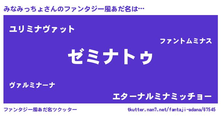 | ポケモン風あだ名 | 『ミナセウス』『ミナキング』 |