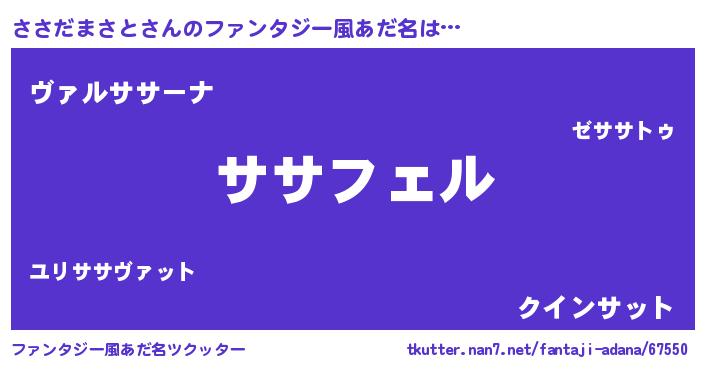 | 男性向けラノベタイトル風あだ名 | 『ササダマサトアートオンライン』 |