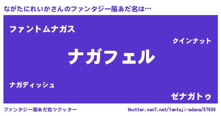 | 男性向けラノベタイトル風あだ名 | 『ナガタニレイカアートオンライン』 |