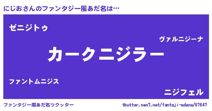 | 男性向けラノベタイトル風あだ名 | 『緋弾のニジオ』『はたらくにじおさま!』 |