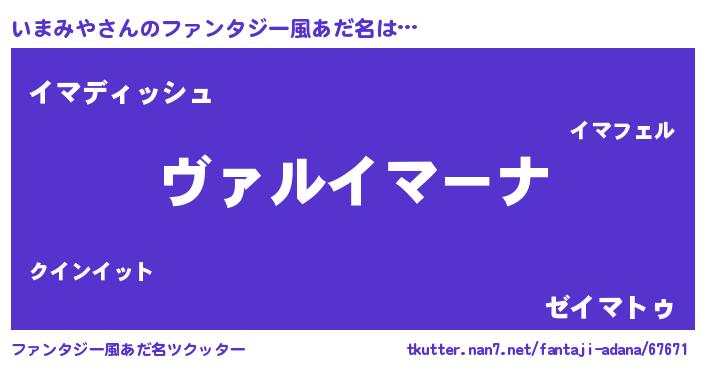 | 女子向けラノベタイトル風あだ名 | 『乙女ゲームの破滅フラグしかない悪役いまみやに転生してしまった…』 |