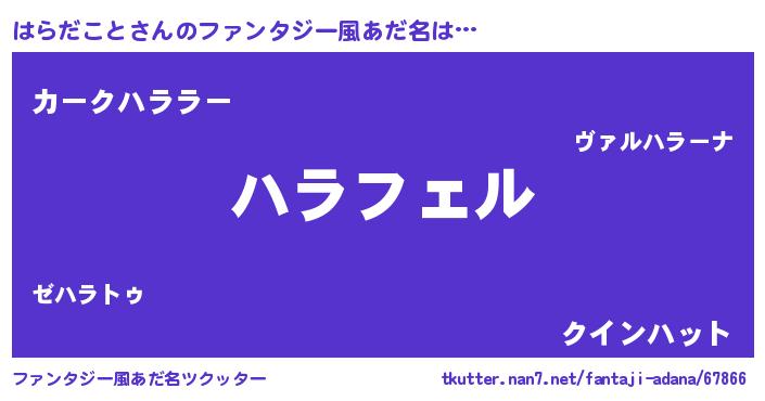 | 男性向けラノベタイトル風あだ名 | 『ハラダコトアートオンライン』 |