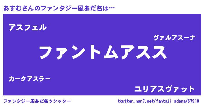 | 女子向けラノベタイトル風あだ名 | 『あすむは平凡を望む』 |