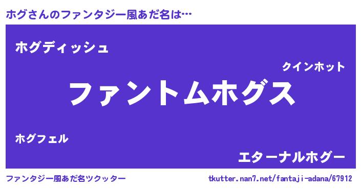 | 意味不明あだ名 | 『とにかく怪しいホグ』『永久保存ホグ』 |