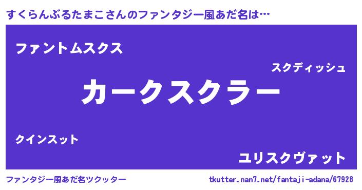 | 男性向けラノベタイトル風あだ名 | 『うちのすくらんぶるたまこが世界を掌握している!』 |