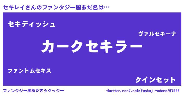 | 自動車の名前っぽいあだ名 | 『フェセーキ』『デミセ』『センR』 |