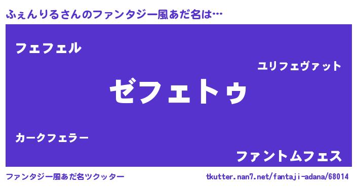 | 意味不明あだ名 | 『自称ふぇんりる』『ペロリンふぇんりる』 |
