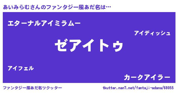 | 男性向けラノベタイトル風あだ名 | 『Re:あいみらむから始める異世界生活』 |