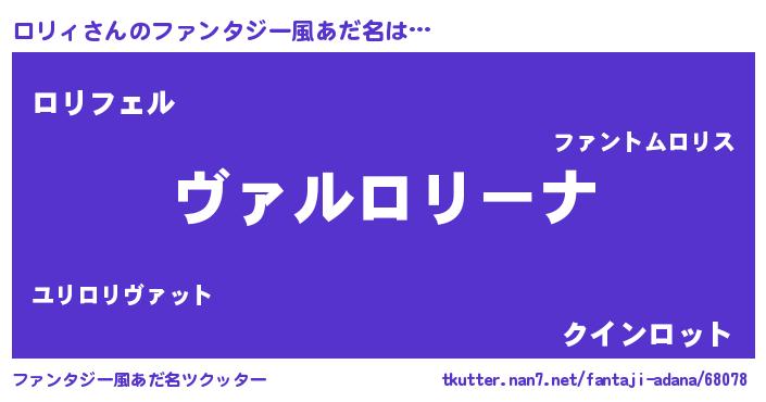 | 意味不明あだ名 | 『住所不定無職ロリィ(86歳)』 |