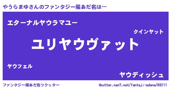 | 男性向けラノベタイトル風あだ名 | 『転生したらやうらまゆだった件』 |