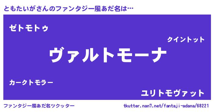| 男性向けラノベタイトル風あだ名 | 『魔弾の王とともたいが』 |
